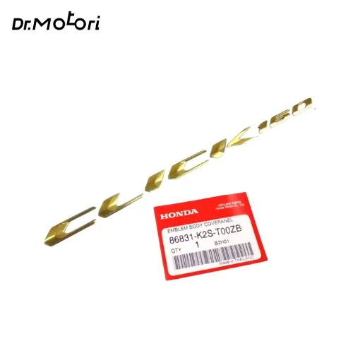 این آرم مخصوص Honda CLICK 160 بوده و با کد فنی 86831-K2S-T00ZB عرضه میشود. رنگ طلایی آن مطابق نمونه کارخانهای طراحی شده و از نظر ابعاد، فونت و محل نصب کاملاً با نسخه اصلی نصبشده روی موتور تطابق دارد.