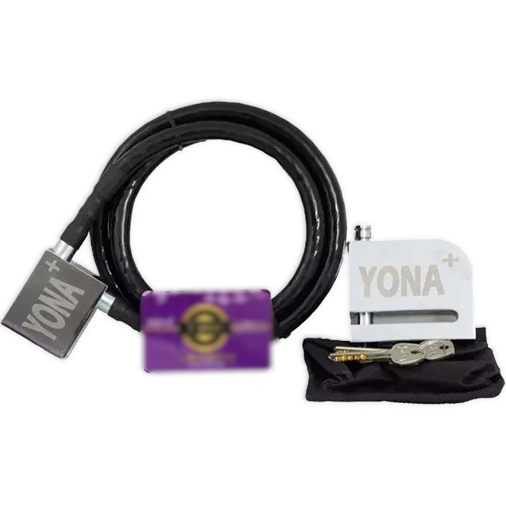این مدل از قفل های کمبو یونا دارای یک قفل تسمه ای یه طول 1.5 متر و همچنین دارای یک قفل دیسکی پین درشت فولادی میباشد.