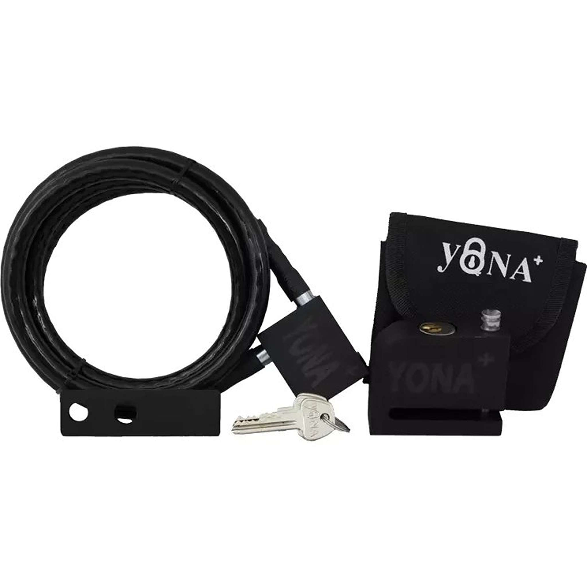 این مدل از قفل های کمبو یونا دارای یک قفل تسمه ای یه طول 1.8 متر و همچنین دارای یک قفل دیسکی پین درشت فولادی میباشد.